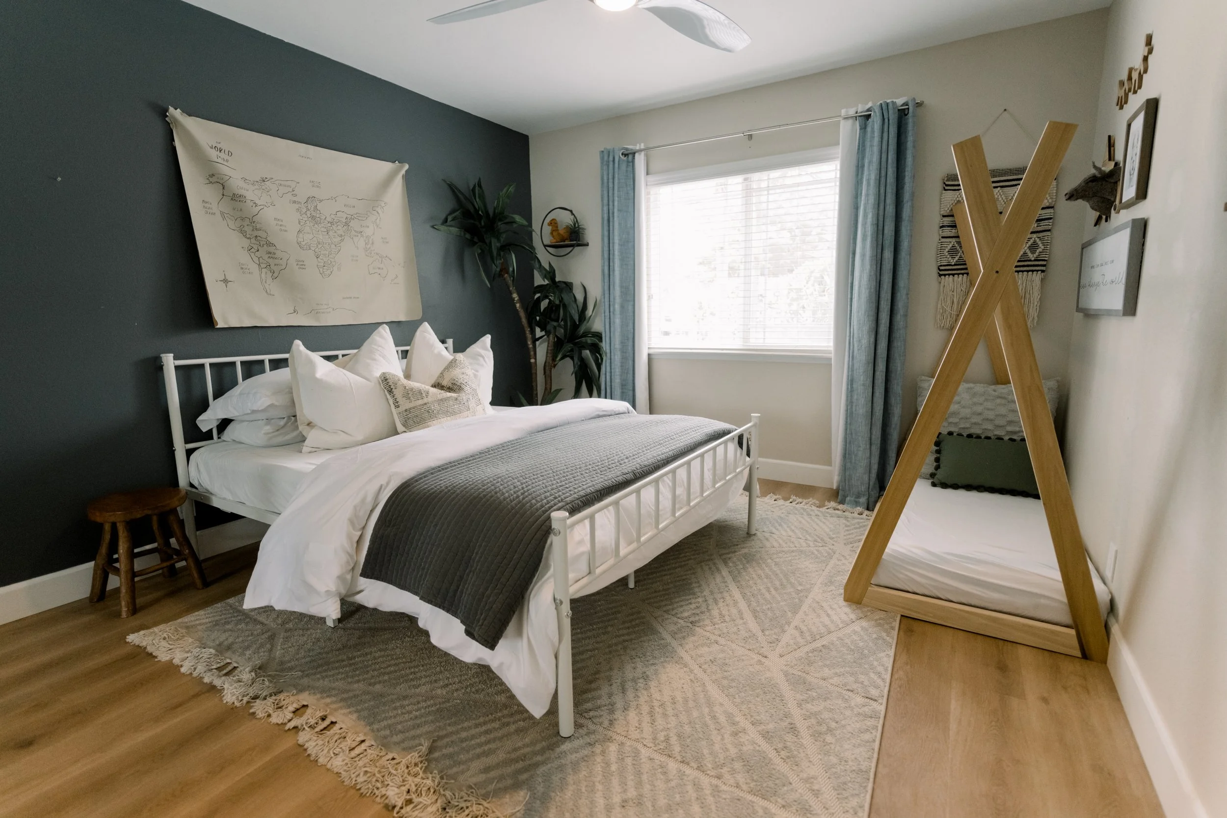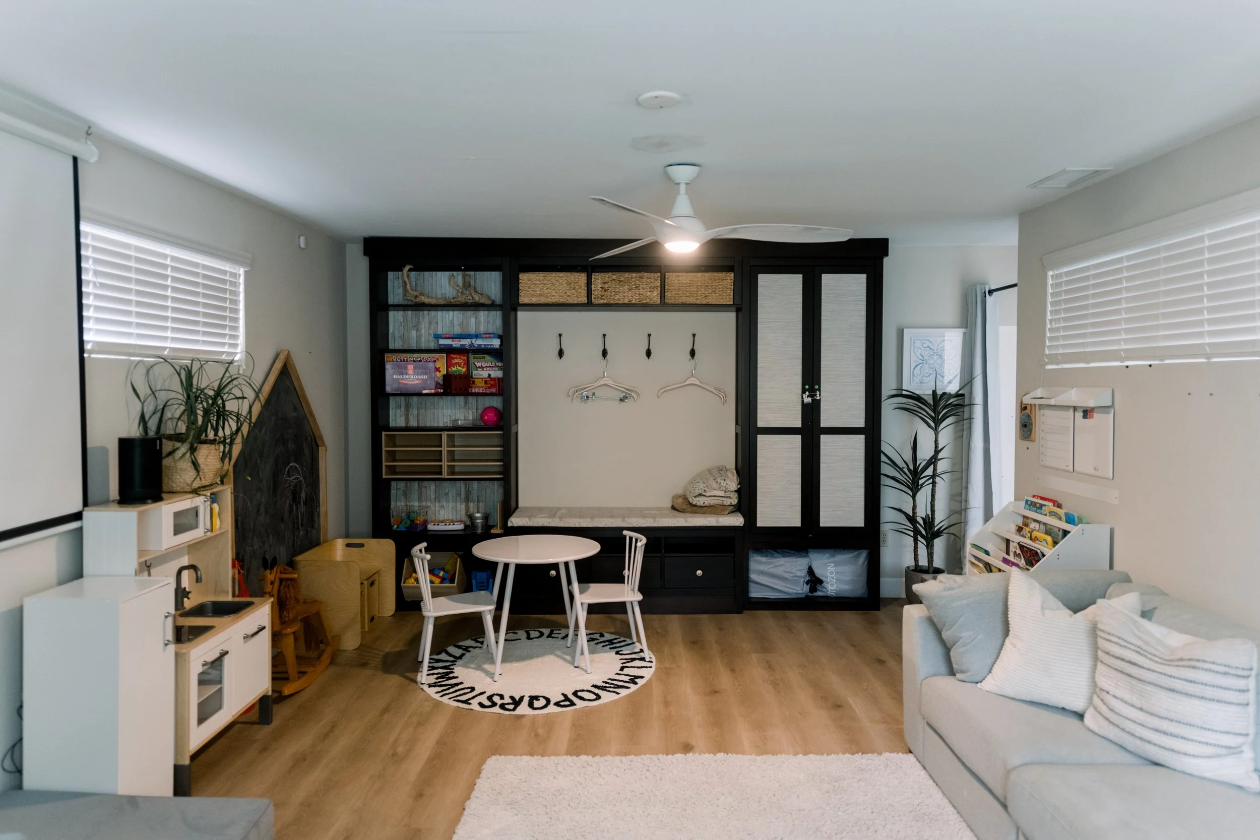 The home is stocked with kids’ books for all ages, magnetic tiles, Legos, marble run, games, puzzles, balls, and a chalkboard. Outdoor fun includes giant Connect 4, “floor is lava” stepping stones, a Toniebox music player, and a fully netted Springfree trampoline with sun roof — plenty to keep kids entertained indoors and out.